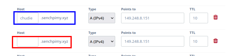Ahora como podemos hacer que en nuestro dominio example.com el cual ya esta ocupado pueda mostrar algo diferente en ejemplo.example.com, esto se logra con nginx. Primero necesitamos actualizar los registros de DNS de nuestro dominio, por lo que si ya tenemos el dominio example.com apuntando a nuestro servidor, en la misma pagina que hicimos esto podremos agregar el subdominio ejemplo, yo lo compre desde la pagina de epik y no se si asi funcione en otras pero en esta solo es agregar el nombre de el subdominio y apuntar el servidor, que en este segundo paso no hay que hacer nada diferente a como es el dominio normal, es decir apuntamos el subdomino al mismo servidor sin especificar el puerto, pues es en realidad nginx el que se encargara de redirigir las peticiones al puerto especificado. Al final nuestro dominio con subdominio quedaria asi: